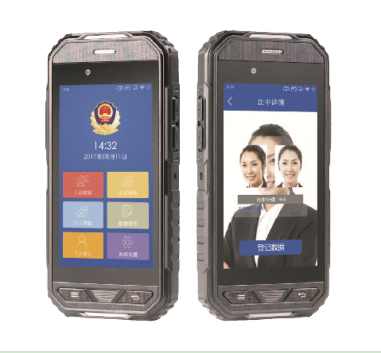内置身份证阅读器、指纹读头和人脸识别算法引擎,比对身份证照片和被识别人人脸或指纹,自动智能核验持证人的身份合法性,完全替代人工模式进行“人证合一”的身份验证。“云+端”无缝配合,无证检验+身份核查,无漏网之鱼可乘之机。手机端输入证件号码并抓拍人脸上传云平台进行一对一人脸比对身份核验;手持端直接抓拍人脸上传云端人口库或黑名单库人脸平台进行一对多身份查询。