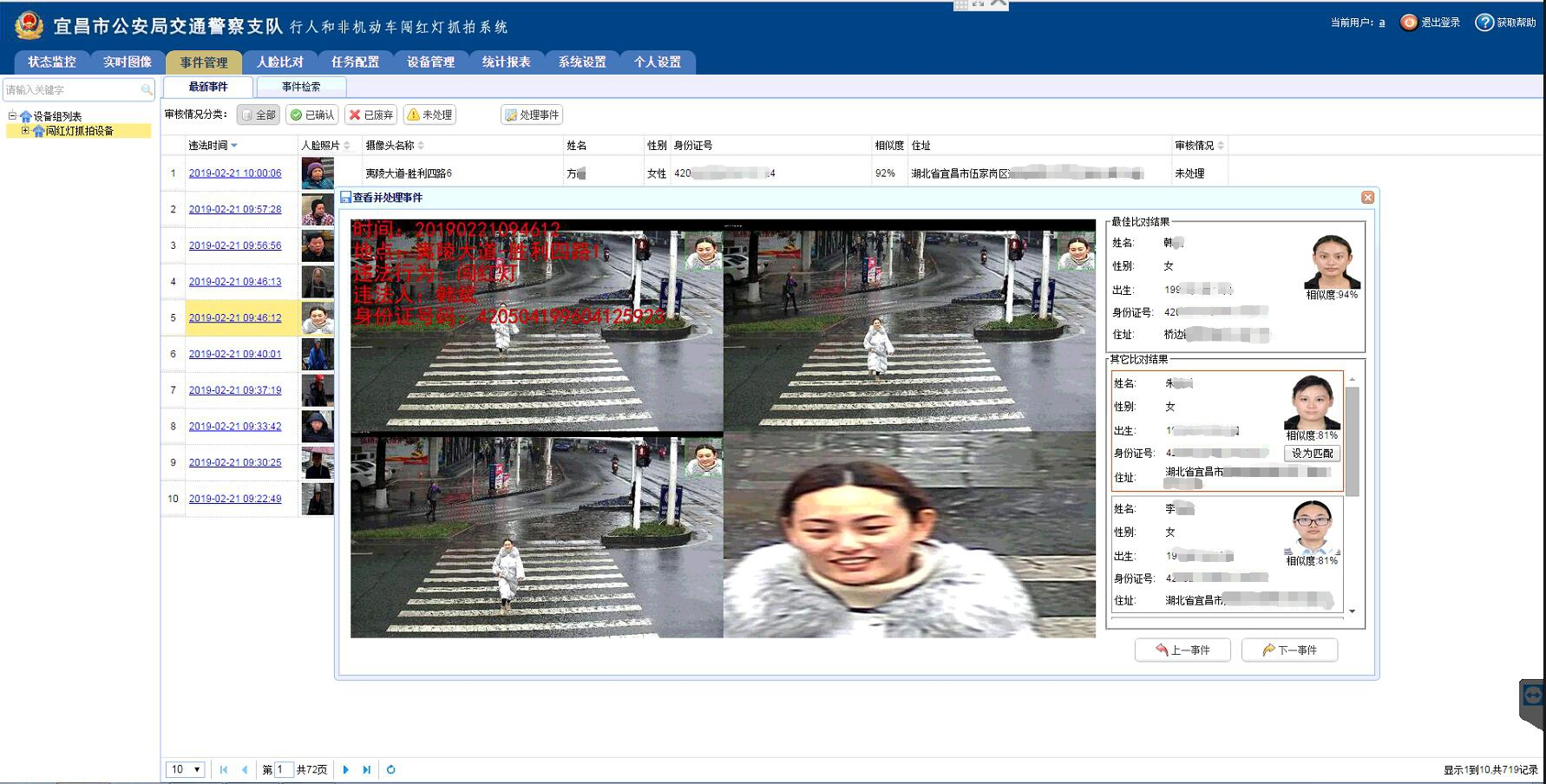 1.对行人和非机动车的闯红灯行为进行抓拍并获取人脸信息,通过与公安人脸库系统对接获取其身份信息,对其违法行为进行认定,并通过路口大屏对其违法行为进行警示和劝导。
