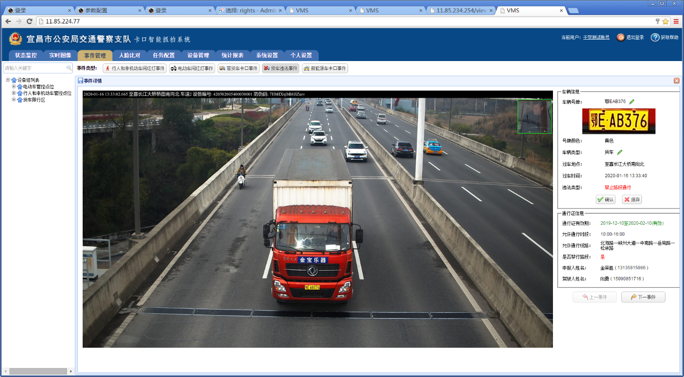 3.电警卡口客货车识别和筛选,通过与货车通行证管理和发放平台对接对货车违法行为进行查处。